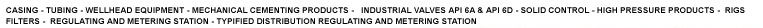 Casing Tubing Wellhead Equipment Mechanical Cementing Industrial Valves API6A&API6D Solid Control High Pressure Products Rigs Filters Regulation & Metering Stations Typifield distribution |